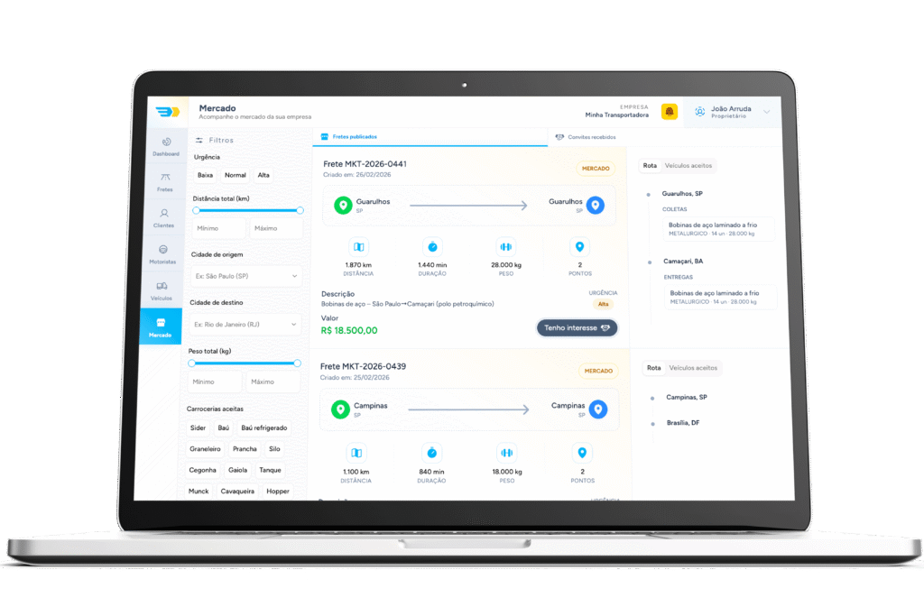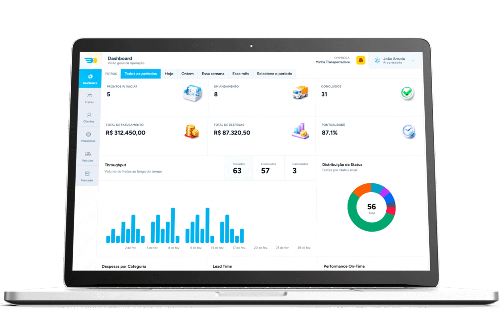 Gestão de fretes, rastreamento em tempo real e inteligência de frota!